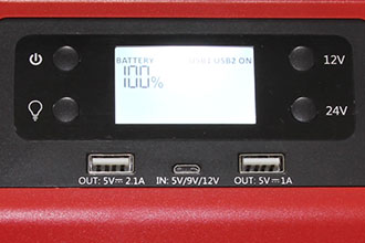 【商品スペック】 容量:45,000mAh 入力:クイックチャージ(5V/2.4A;9V/2A;12V/1.5A) 充電:約10時間 起動電流:12V-1000A 24V-500A ピーク電流:12V-2000A 24V-1000A 使用温度範囲:-20℃〜60℃ バッテリー:Li-ion(リチウムイオン) 寸法:248mm×248mm×96mm 重量:2250g 充電環境:家庭用100Vコンセント 出力口・出力サポート:12V/24Vエンジンスタート用 5V/1A 5V/2.1A 12V/10A 保証期間:購入日より6ヶ月