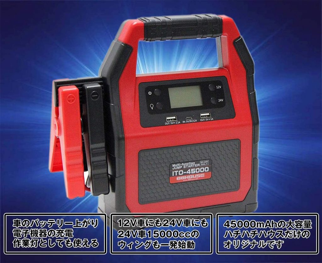 - 様々な使い場所:12Vバッテリー搭載の二輪車・自動車等や24Vバッテリーのトラック、バス、農機建機などバッテリー切れの緊急事態再度スタート可能!超大容量モバイルバッテリー!暗闇作業 緊急時照明のLEDライトという三つ機能は一台に備えます