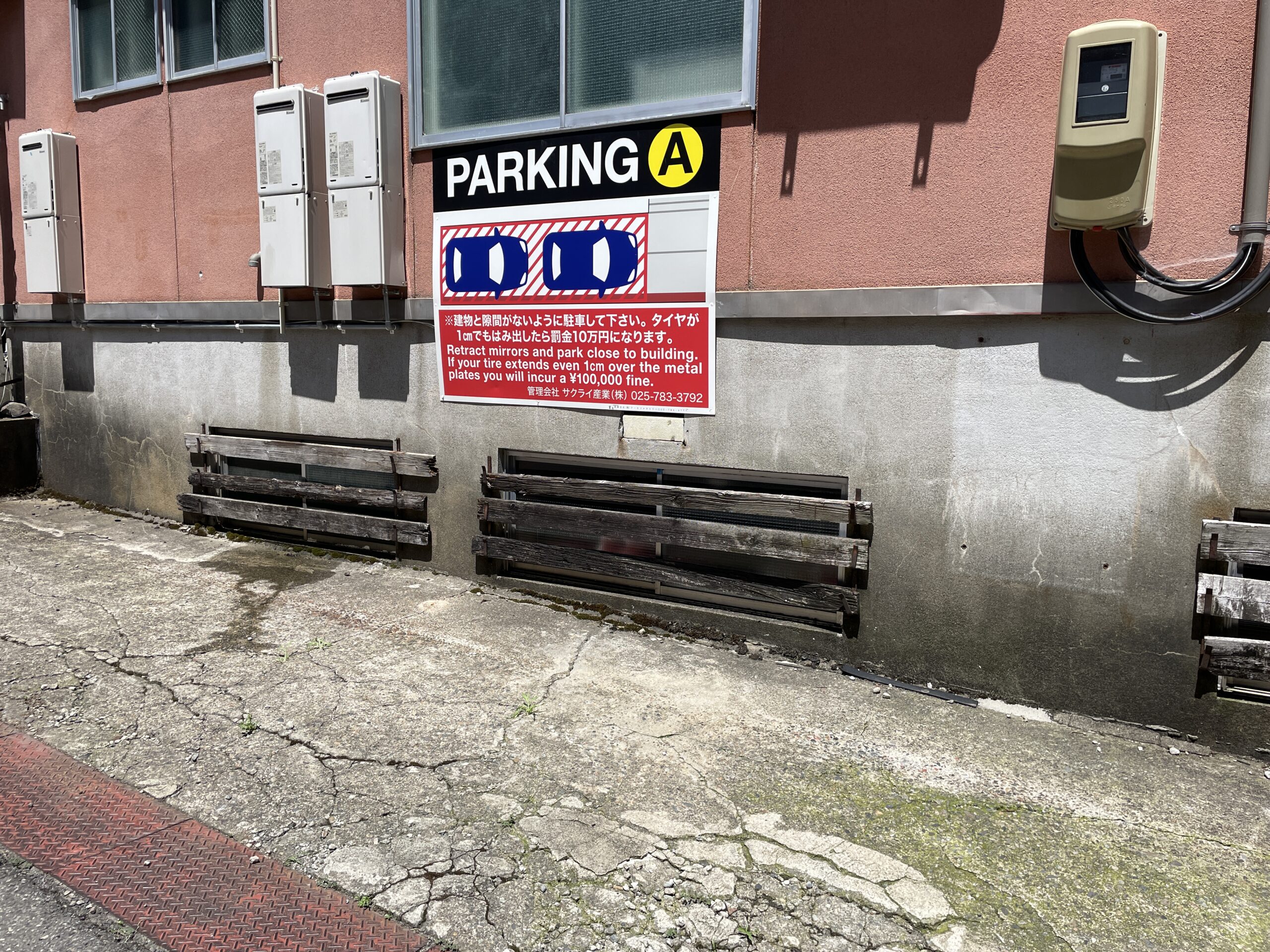 駐車スペースは、PARKING A と B の2カ所で最大3台(先着順)となっております。