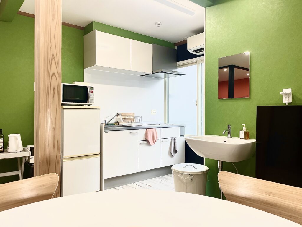 備 品 | 調理道具(包丁・まな板・フライパン・鍋など)・食器類(グラス・お皿・スプーン類・箸など) |